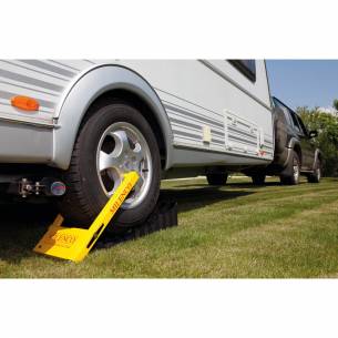 La zapata compacta se fija a la rueda mediante una tuerca, ofreciendo mayor visibilidad y facilidad de instalación. Su diseño la hace perfectamente adecuada para viajar y aparcar, ya sea durante periodos cortos o largos.