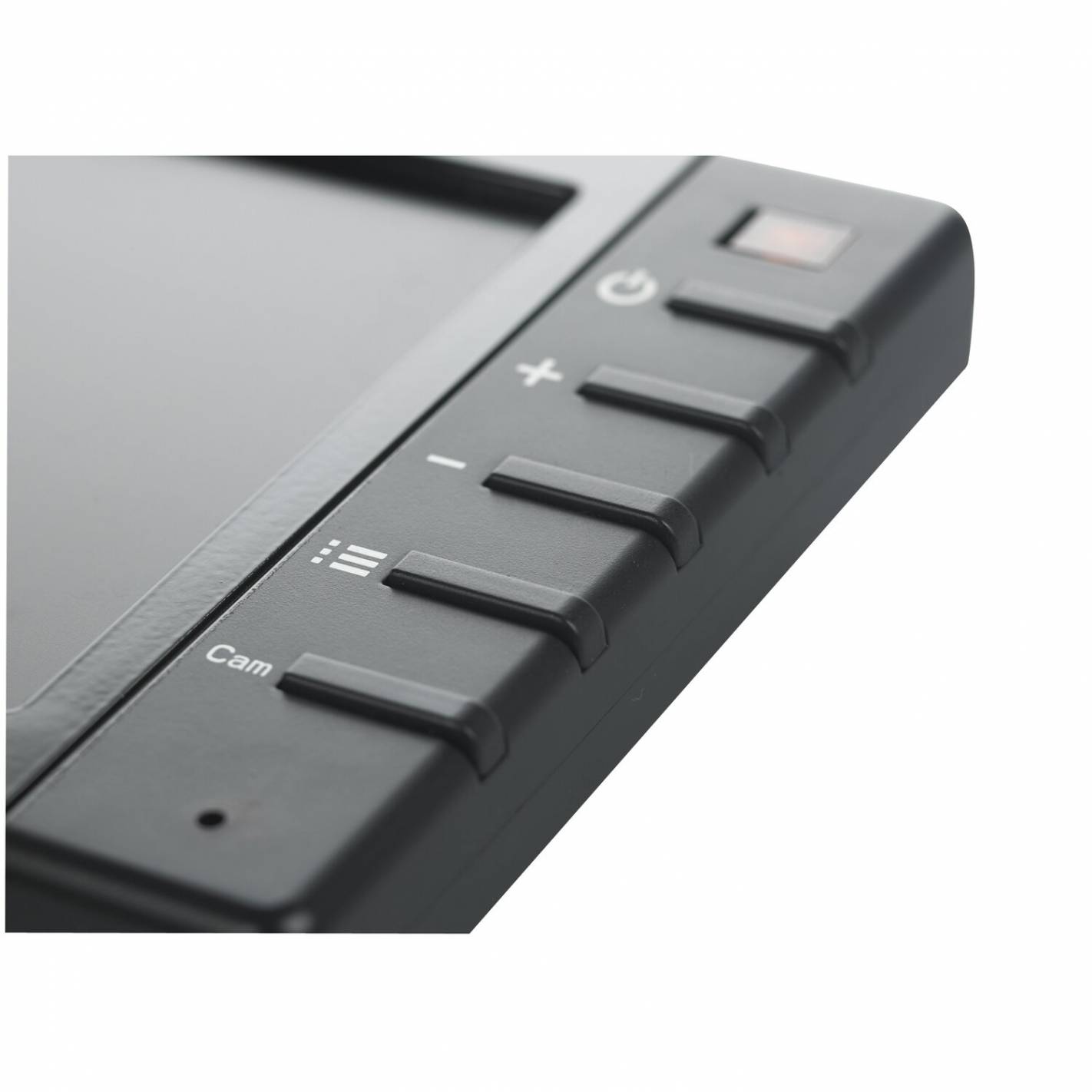 Pantalla LCD TFT 16:9 de matriz activa. Resolución: 0,6 millones de píxeles. Teclado iluminado. Voltaje: 12/24 V. Longitud del cable suministrado: 20 m. Con cable de conexión y soporte de montaje. Pantalla M55L de 12,7 cm de diagonal. Dos entradas de cámara (PAL/NTSC). Dimensiones (AnxAlxPr): 146 x 87 x 26 mm.