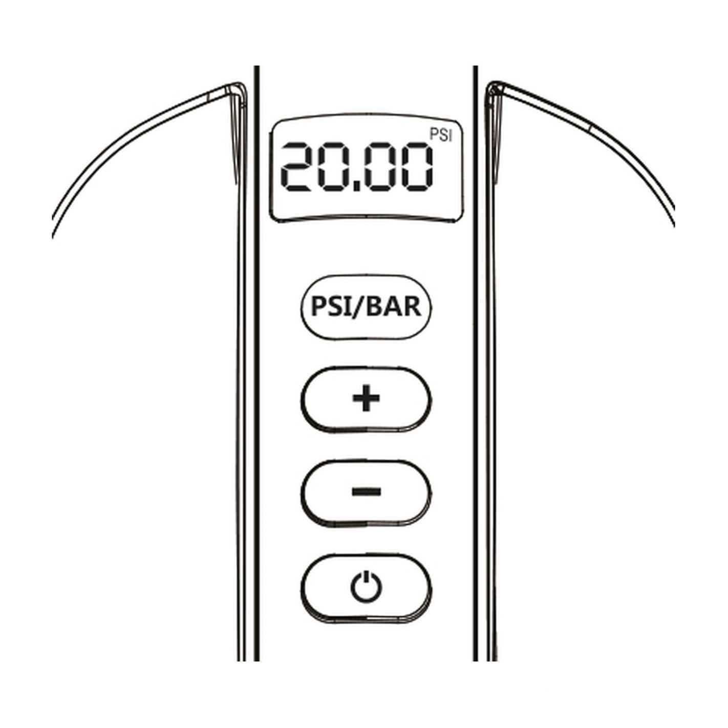 La bomba de aire eléctrica tiene una pantalla LCD con la presión preestablecida. Puede tener una presión de inflado máxima de 20 PSI.