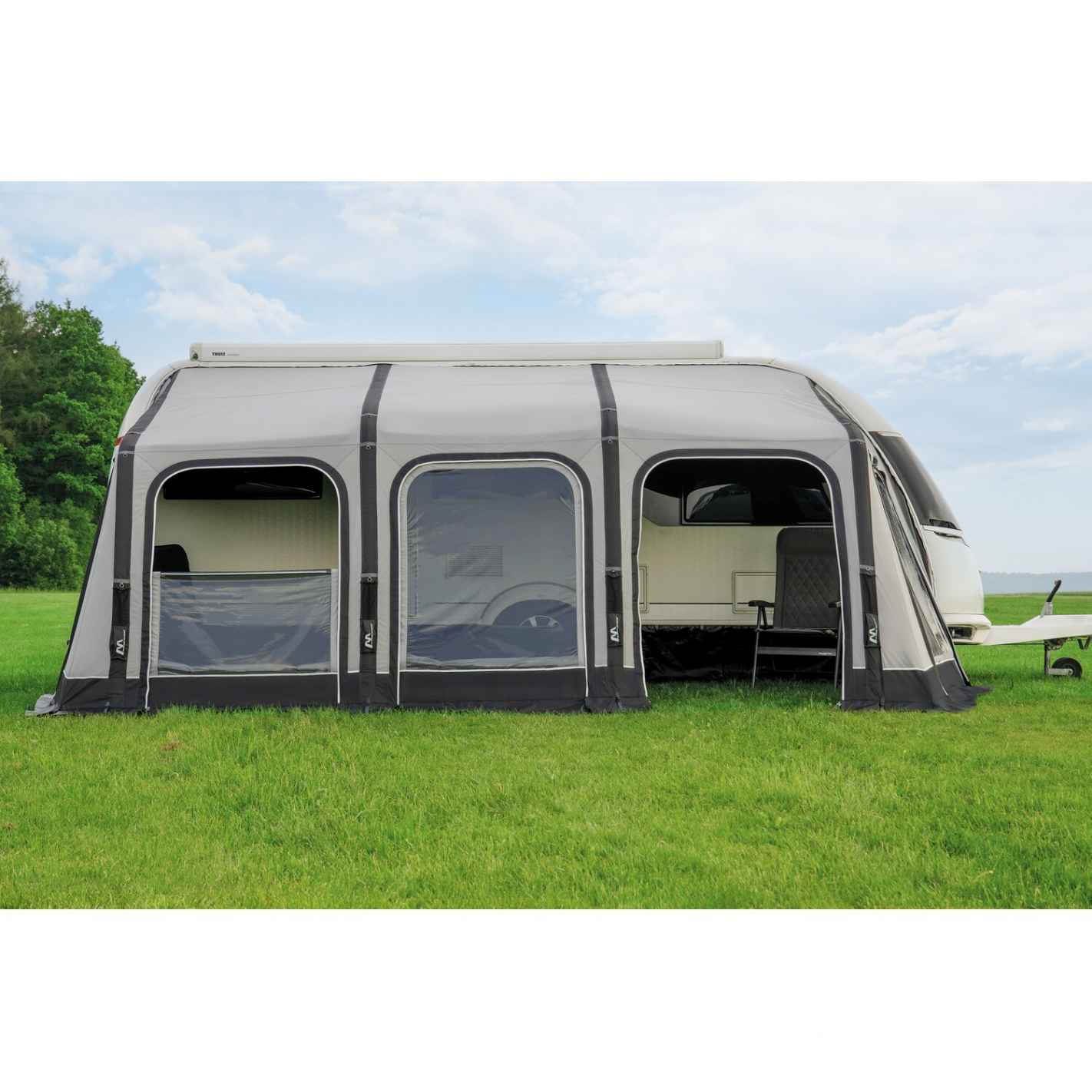 El avance inflable Ceres combina diseño moderno, confort y practicidad, con una profundidad de 265 cm que crea un espacio habitable amplio y luminoso. Su estructura redondeada y sus materiales de calidad, como el tejido HydroTech® Ripstop, garantizan el confort incluso en verano gracias a una ventilación permanente.