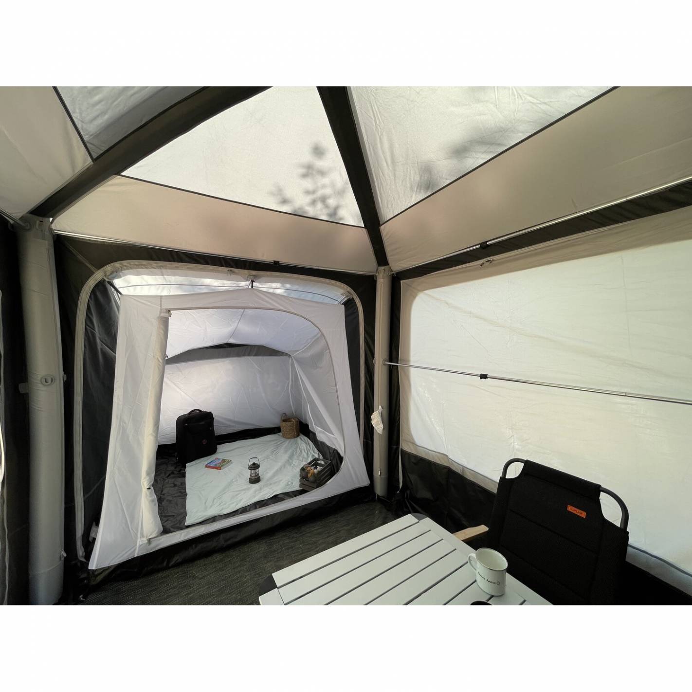 La cámara anexa del refugio aéreo Soplair Lodge, equipada con cremalleras y un sistema de inflado de un solo punto, crea un espacio Confort e íntimo, perfecto para disfrutar de un momento de frescor y relajación.