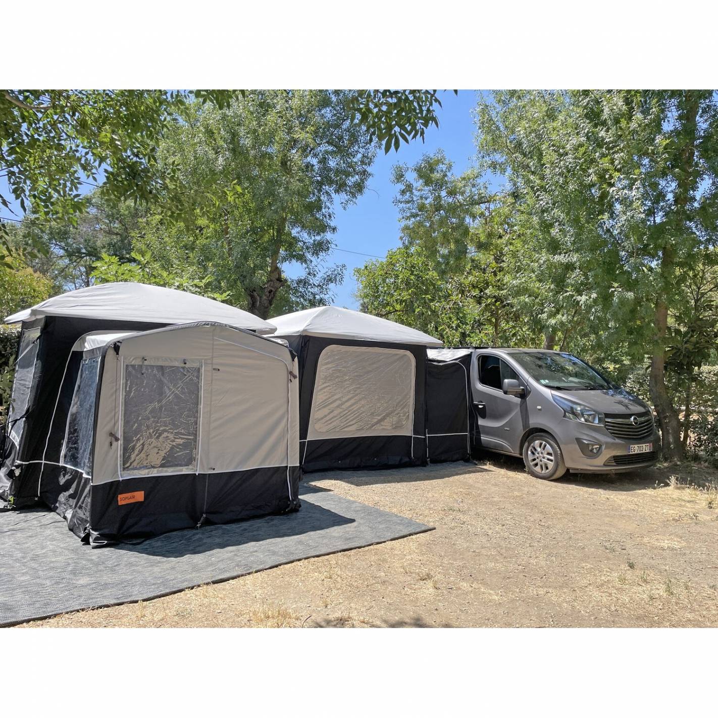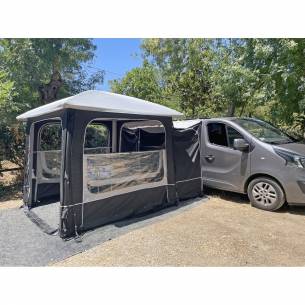 El túnel de conexión lateral de la cabina de aire Soplair Lodge, equipado con una guía deslizante y un doble anillo de encaje, permite una fácil conexión a tu vehículo, al tiempo que proporciona puertas de acceso adicionales y un práctico espacio extra
