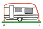 Desliza una cuerda por la barandilla de tu caravana (utiliza una sardina), y desliza la cuerda por la barandilla de la caravana para llegar del punto A al punto B, a plomo, como se muestra en el diagrama.