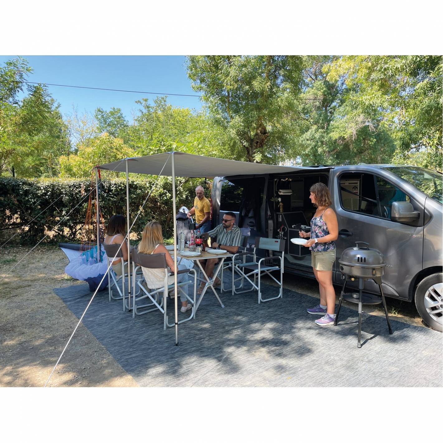 Diseñada para la vida nómada, se transporta fácilmente gracias a sus patas desmontables, su asa integrada y su peso pluma de 12 kg. Su ingenioso diseño incorpora una bandeja y un soporte para cacerolas, lo que la convierte en una auténtica estación de cocción multifunción.