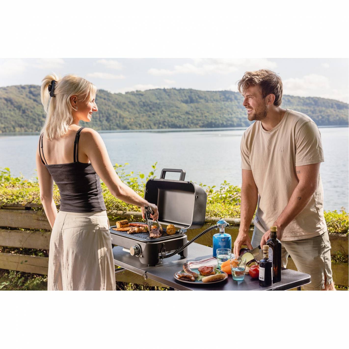 Con su potencia de 2,4 kW y su amplia superficie de cocción de 1200 cm², garantiza un calor homogéneo para una cocción perfecta, tanto si preparas brochetas, verduras o filetes bien dorados. Su quemador Blue Flame de acero inoxidable asegura una distribución óptima del calor y limita el consumo de gas. Su tapa permite una cocción precisa. Fácil de encender gracias a su sistema piezoeléctrico, promete comidas deliciosas allá donde te lleve tu aventura.