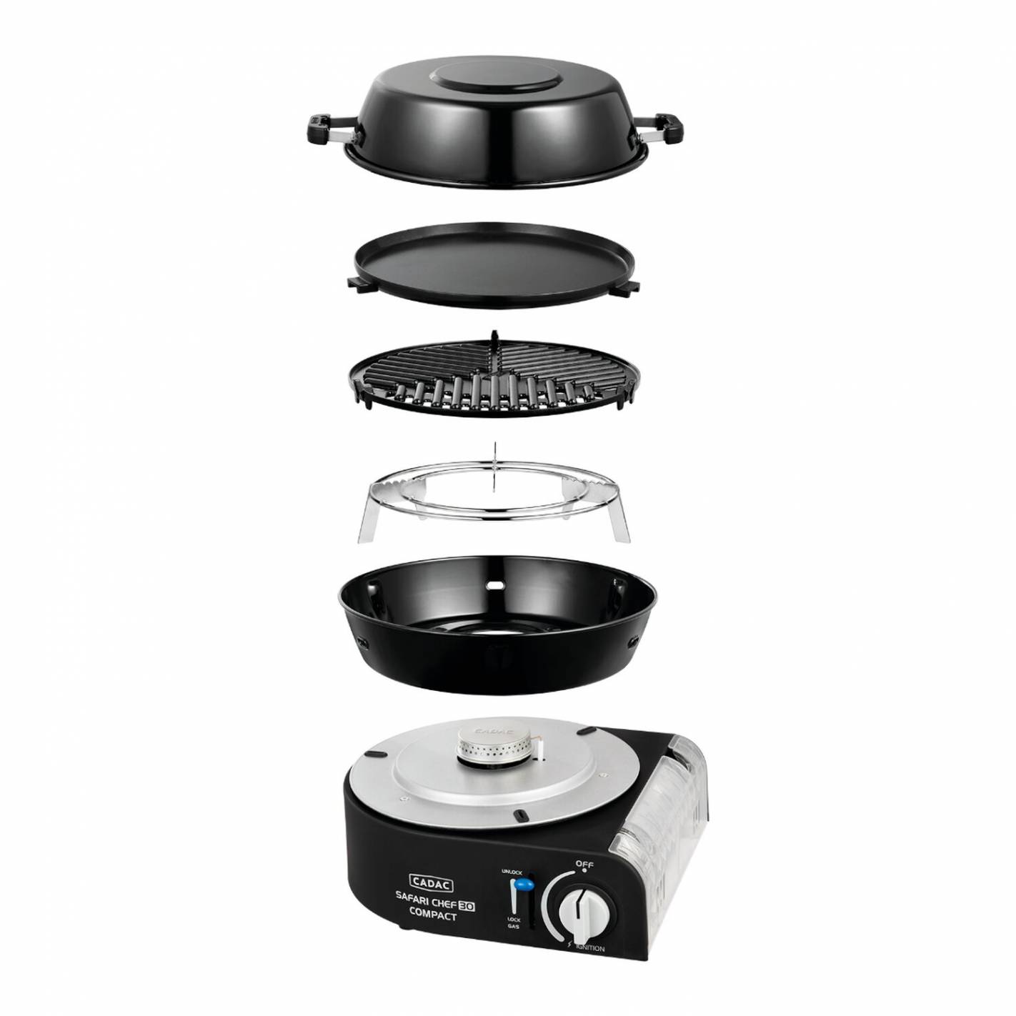 La barbacoa Safari Chef 30 Compact es extremadamente versátil, gracias a las numerosas superficies de cocción que incorpora: