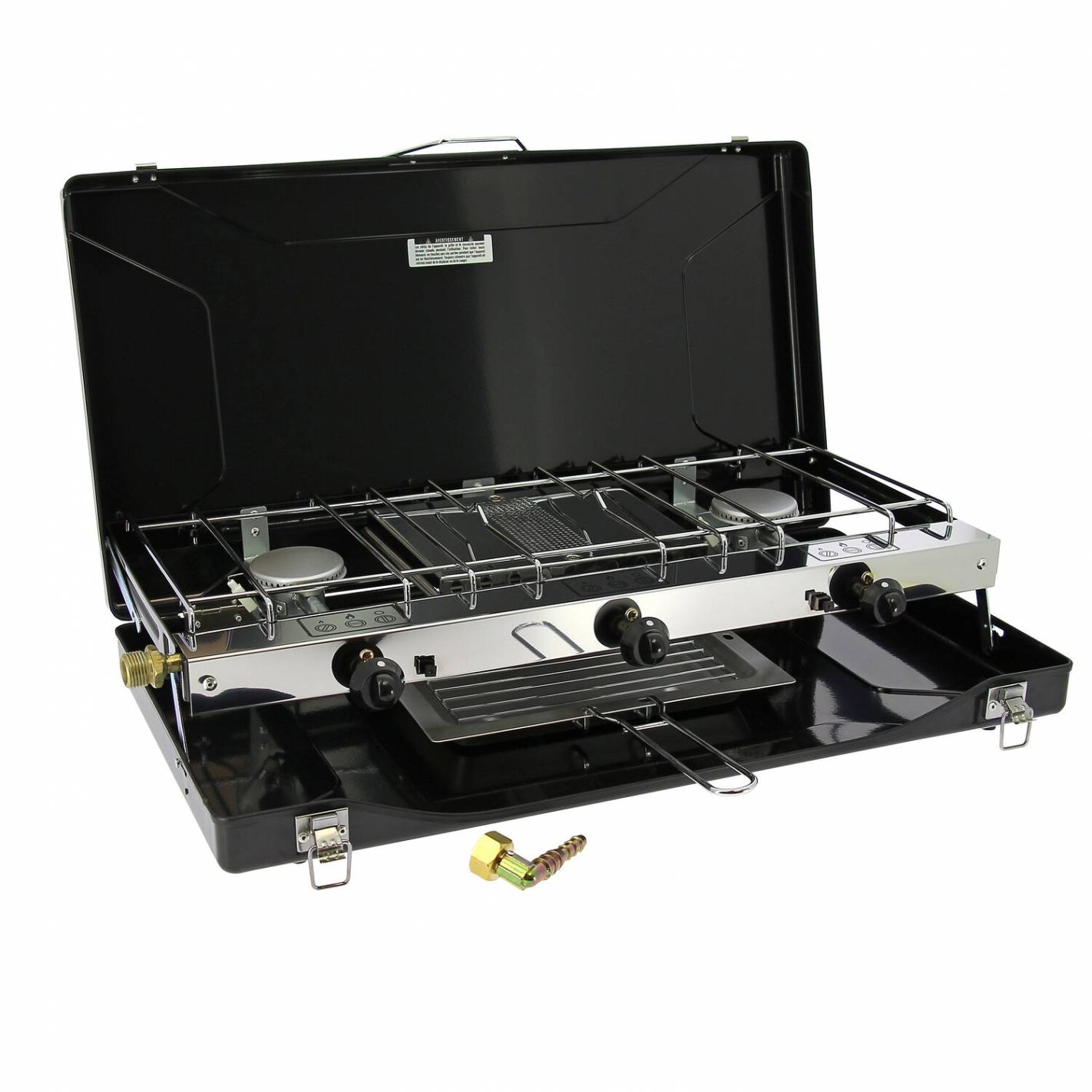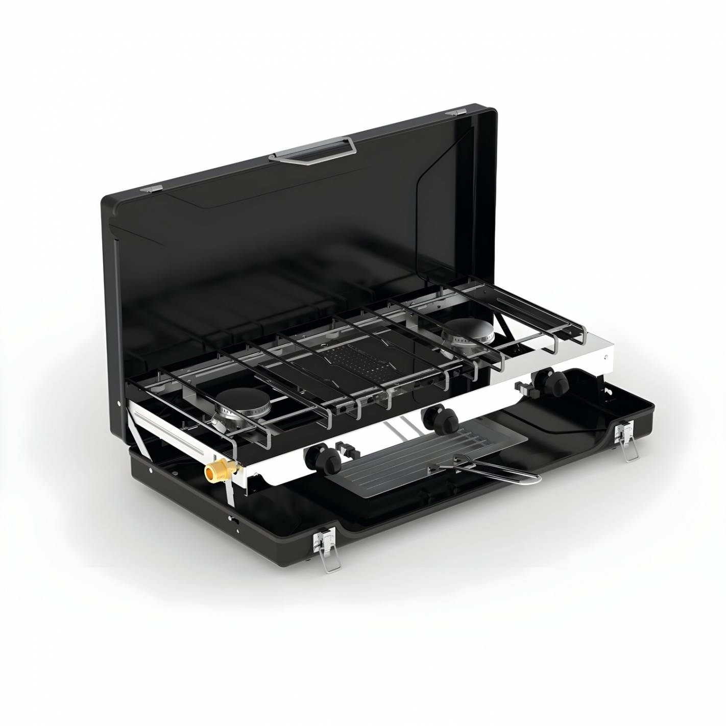 La cocina de gas Incasa de 2 fuegos + grill/tostadora combina potencia, practicidad y tamaño compacto para cocinar como en casa, incluso cuando estás de viaje. Con sus dos potentes fuegos y su grill/tostadora integrado, permite preparar varios platos al mismo tiempo que calienta o tuesta pan y bollería en un abrir y cerrar de ojos.