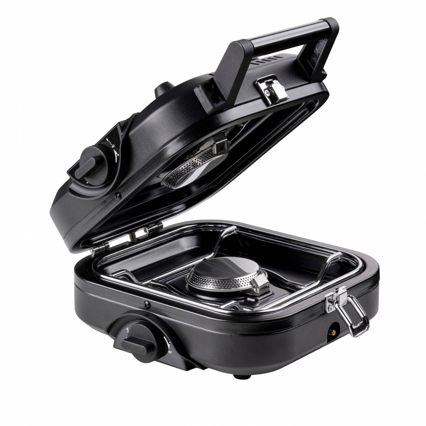 El hornillo de gas plegable de 2 fuegos KEMPER ofrece total libertad culinaria al aire libre, combinando potencia, practicidad y tamaño compacto. Ideal para acampadas, picnics o escapadas, permite cocinar dos platos a la vez gracias a sus quemadores independientes de acero inoxidable con encendido piezoeléctrico automático, para una cocción precisa y homogénea en cada uso. Fácil de plegar, transportar y guardar, cabe en cualquier maletero o furgoneta. Es compatible con cartuchos con válvula roscada (7/16").