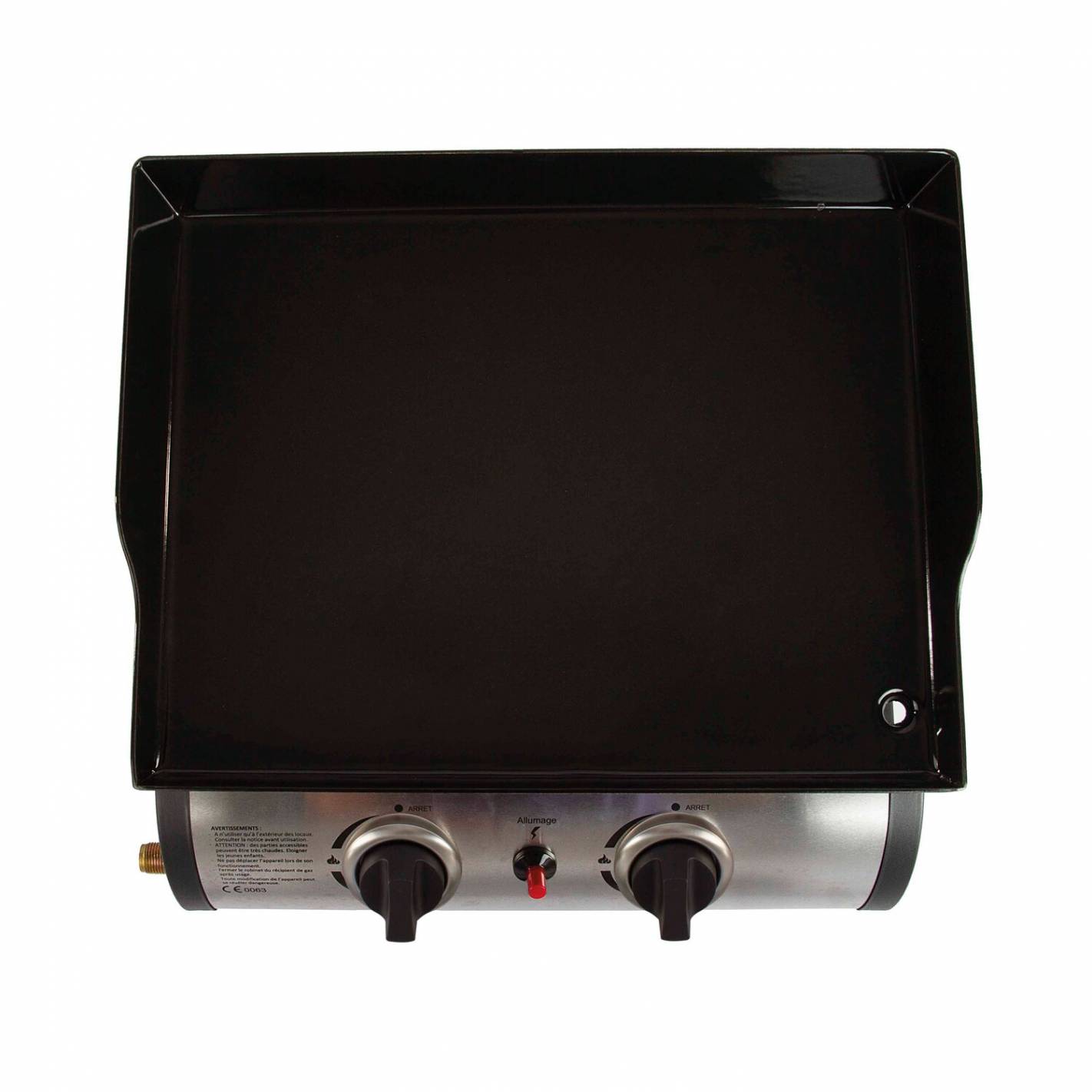 Los dos quemadores distribuyen el calor uniformemente por la plancha de asar.