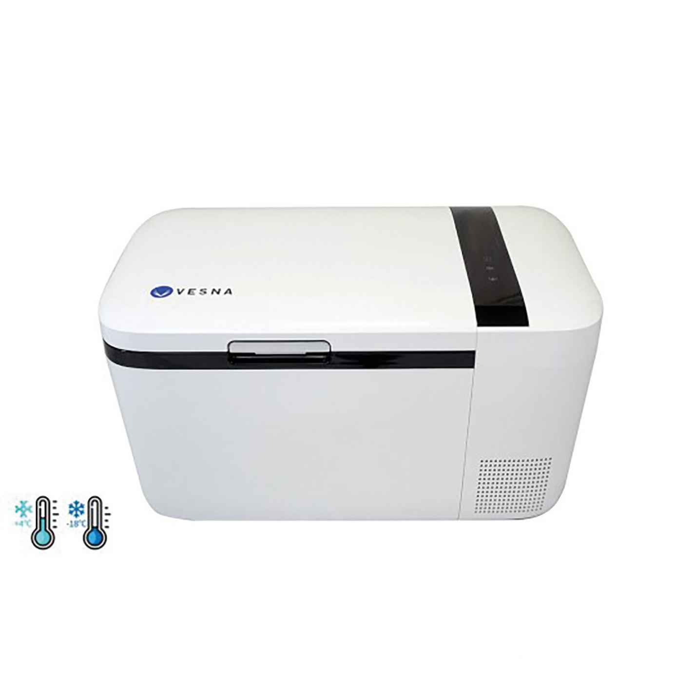 Vesna, especialista en neveras de transporte desde hace más de 50 años, saca al mercado una nevera verdaderamente portátil en modo conectado. Esta nevera de compresión conectada de 20L cuenta con un compresor de alto rendimiento que garantiza la máxima refrigeración (hasta -18°C).