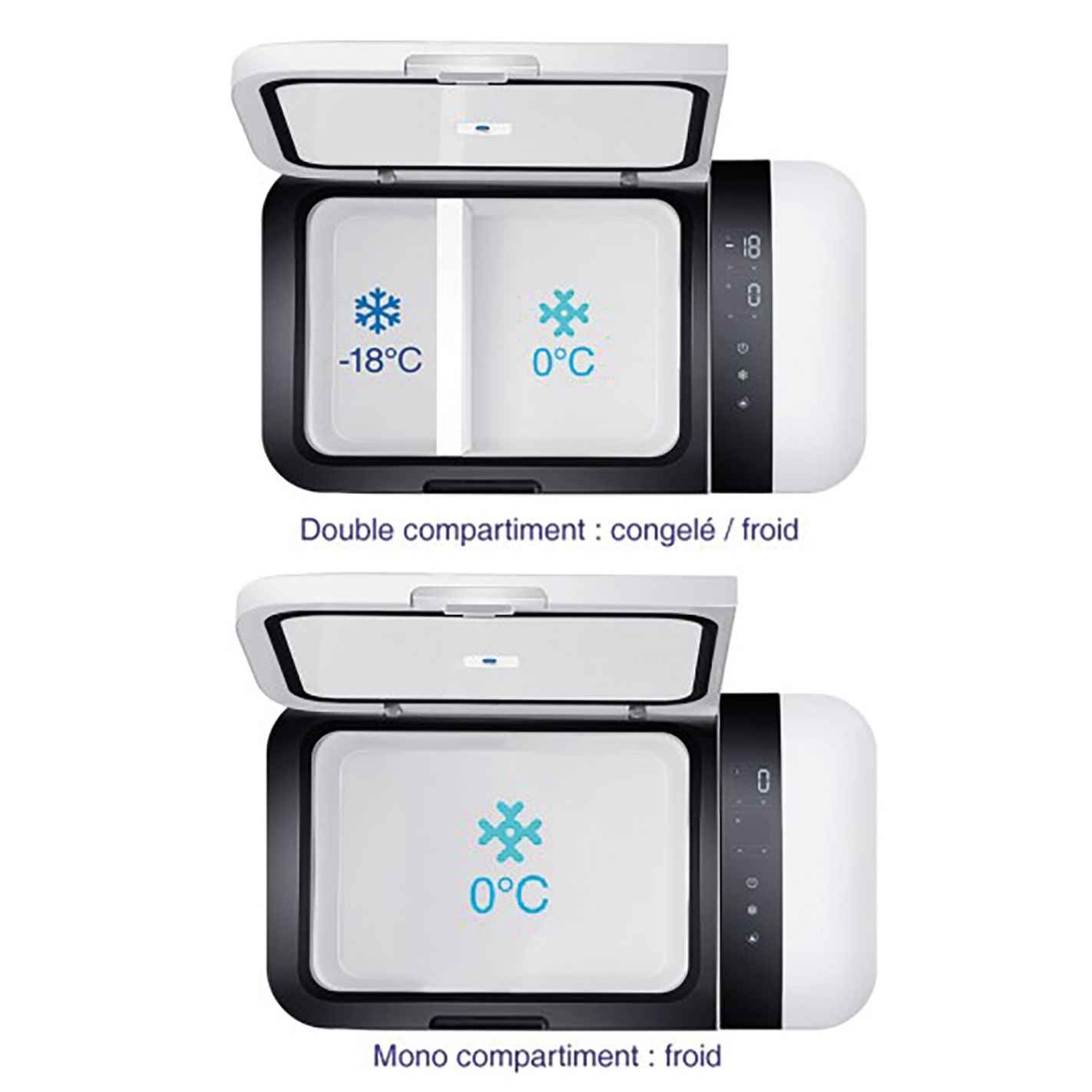 Esta nevera/congelador móvil está disponible en 570 x 320 x 315 (LxAxA), con una capacidad de 20 litros. La nevera conectada cabe en el maletero, en el asiento trasero, y encontrará fácilmente su lugar en su furgoneta o autocaravana.