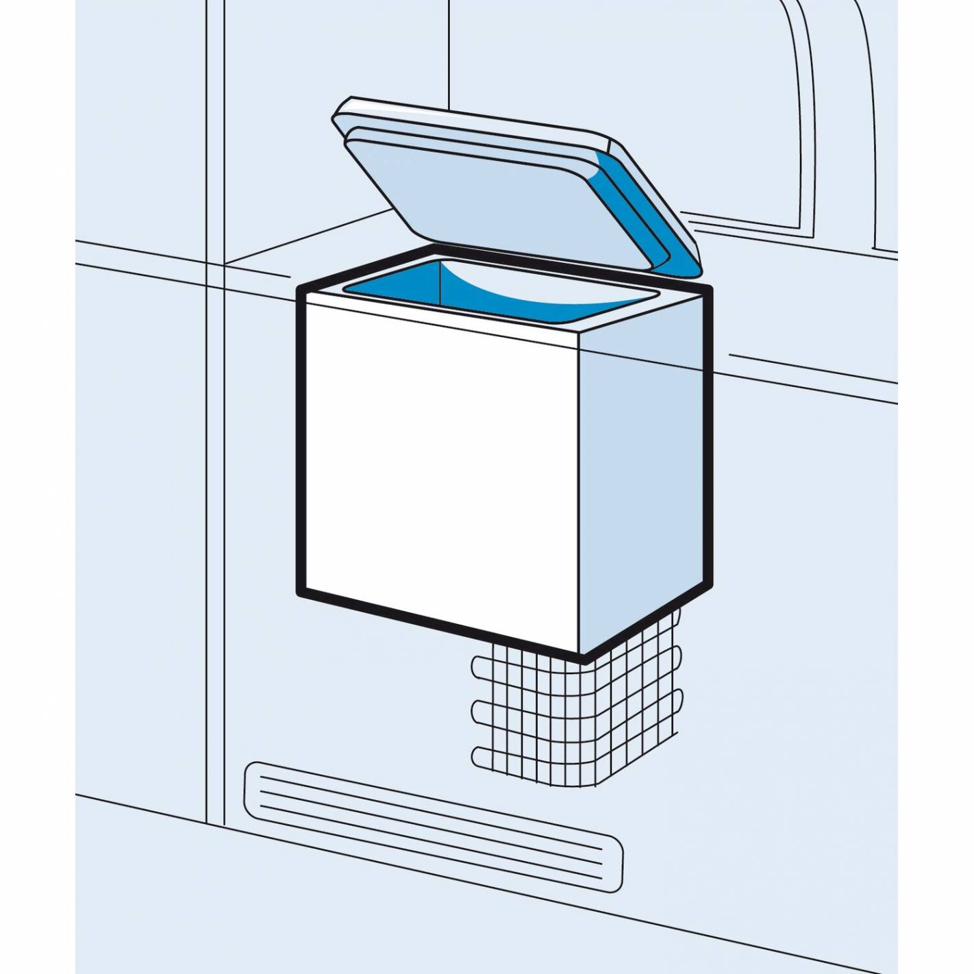 El arcón tiene una abertura superior. En el interior, hay una pequeña cesta para optimizar el almacenamiento. El revestimiento es de acero inoxidable para facilitar el mantenimiento. El revestimiento exterior es de chapa de acero galvanizado para mayor resistencia.