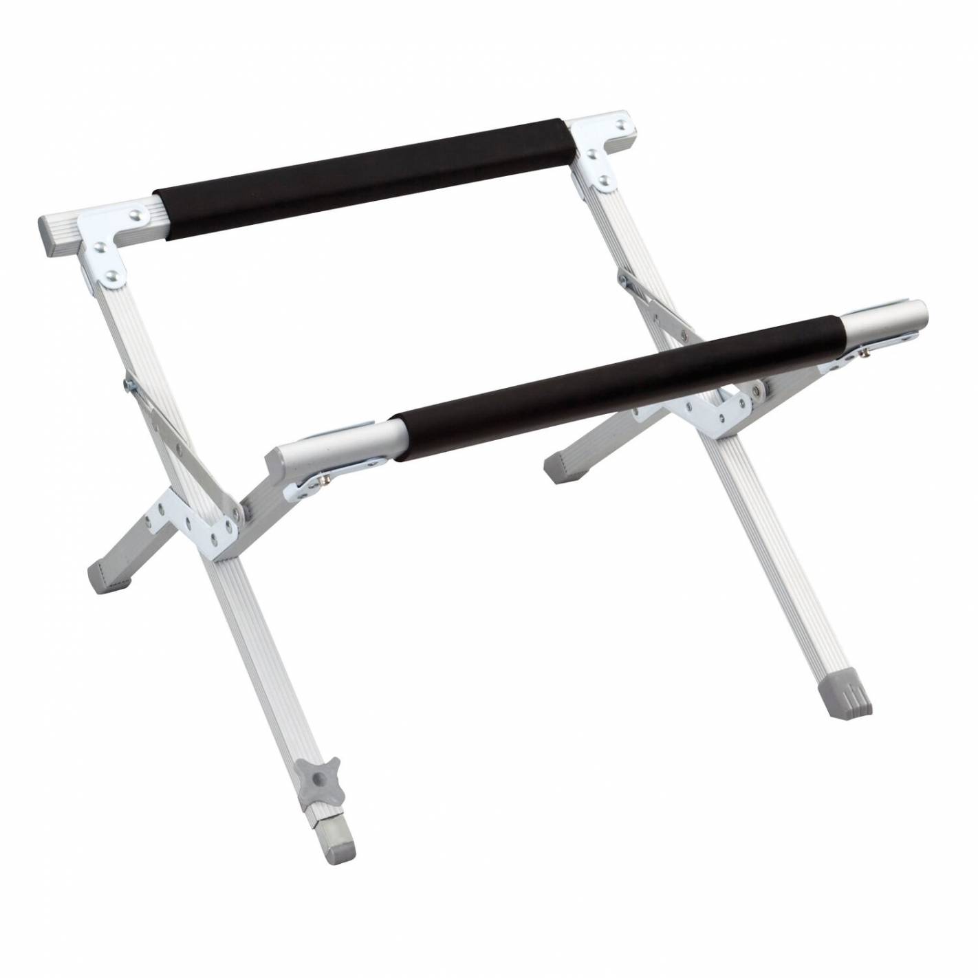 Con este práctico soporte de aluminio no tendrá que agacharse continuamente para alcanzar el contenido de su nevera. Es el accesorio perfecto para cuando vaya a comer al aire libre con su familia o amigos. Se acabaron los dolores de espalda! Puede ajustarlo en 2 posiciones que varían la altura: una posición baja con una altura de 330 mm y una posición alta con una altura de 450 mm. Además, mantiene su nevera alejada del suelo a la vez que la mantiene estable. El soporte tiene un pie ajustable para adaptarse al tipo de suelo en el que esté comiendo. ¡Es perfecto si el suelo que ha elegido no es uniforme! También tiene acolchado de espuma en las barras superiores para evitar que su nevera se raye o resbale, y un armazón de aluminio para mayor resistencia y ligereza. De hecho, ¡sólo pesa 1,5 kg!