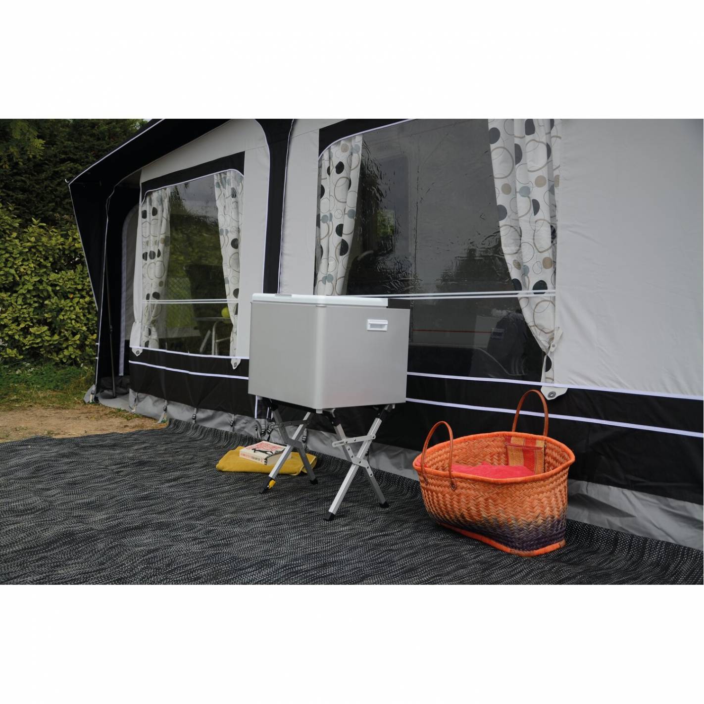 El soporte para neveras se pliega para facilitar su transporte en su vehículo de ocio. Por tanto, ocupa muy poco espacio y es fácil de llevar con usted.