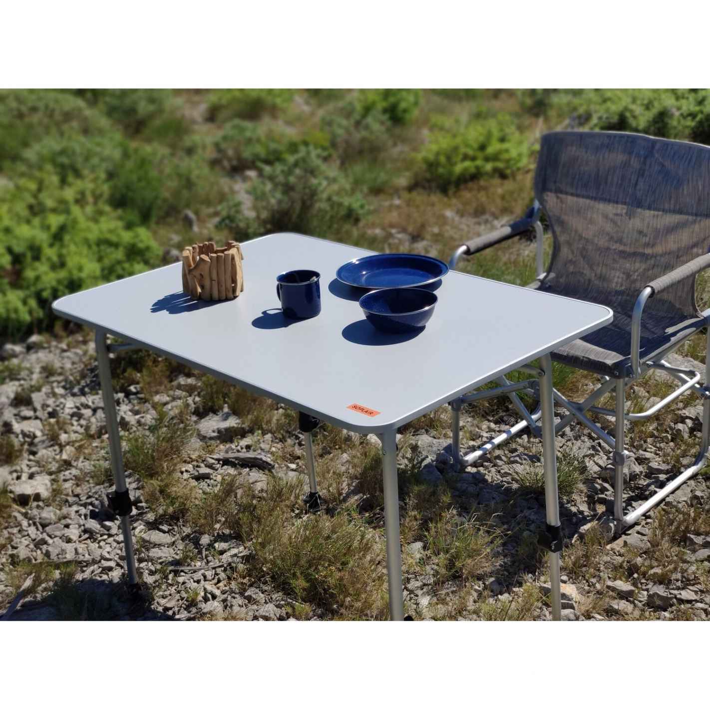 La mesa de aluminio dispone de patas multidireccionales y regulables en altura para lograr la máxima estabilidad sobre cualquier superficie. Así podrá instalarse donde quiera durante su escapada.