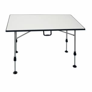 Mesa de camping de aluminio para 4 personas Cassiopée. Una verdadera mesa de camping, fácil de montar y de desmontar. Fácil de limpiar con su tablero monobloque estratificado. Es ligera y resistente gracias a su estructura de aluminio. Cuenta con 4 pies antihundimiento ajustables en altura (0 a 15 cm) para mayor estabilidad y versatilidad. Y, por último, se guarda y se transporta fácilmente gracias a su bolsa de tela de poliéster 600D y a su asa de transporte. Dimensiones (LxAxP): 115 x 74 x 70  cm.