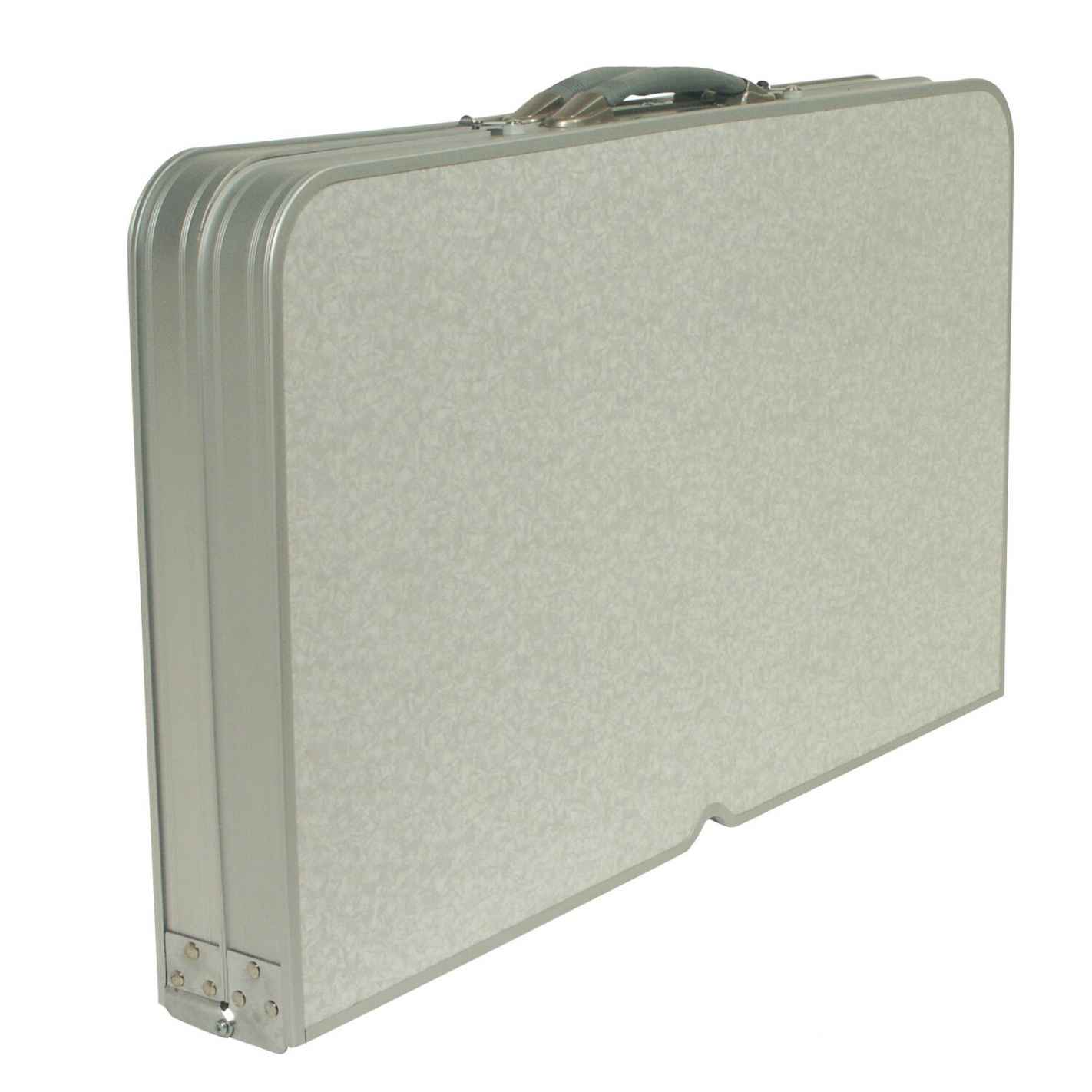 La mesa maleta es fácil de llevar a todas partes con usted en todos sus viajes de camping o con su vehículo de ocio (camper, barco, caravana, furgoneta...). Al ser compacta, se transforma, como su nombre indica, en una maleta. Así podrá transportarla sin dificultad utilizando su asa de transporte. ¡Inteligente!