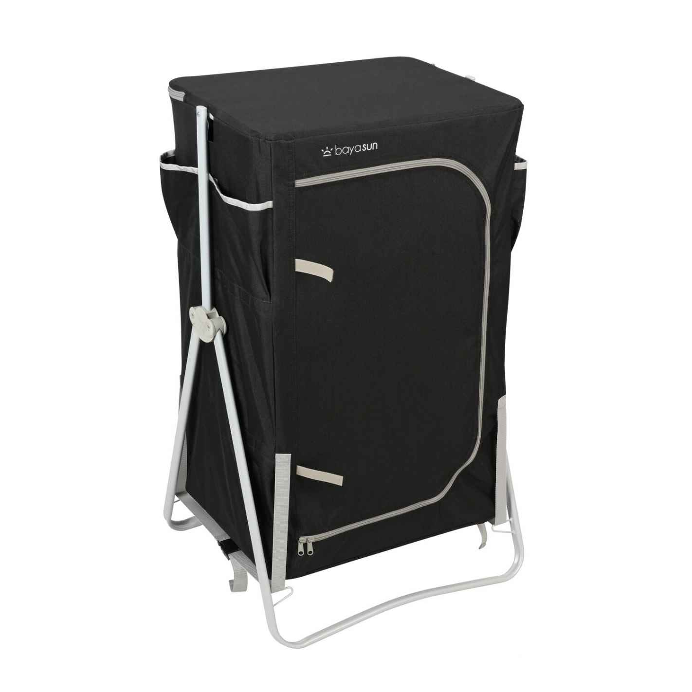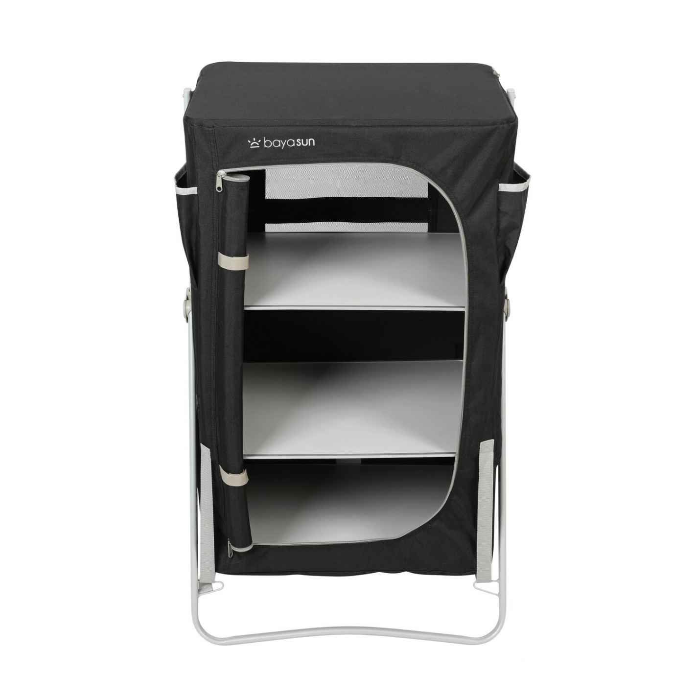 Práctico mueble de cocina con 4 espacios de almacenamiento, bolsillos laterales y encimera con protector contra llamas. Su lona transpirable de poliéster 600D evita la humedad y sus patas regulables garantizan una buena estabilidad. Se entrega con bolsa de transporte.