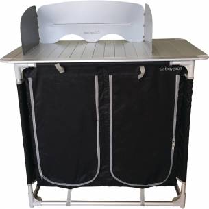 El mueble de cocina Baya Sun es perfecto para las cocinas de exterior. En un camping, o junto a tu vehículo de ocio (autocaravana, caravana, barco, furgoneta transformada, furgoneta, etc.), el mueble cocina te permite cocinar al aire libre y luego compartir una comida de convivencia con la familia o los amigos.