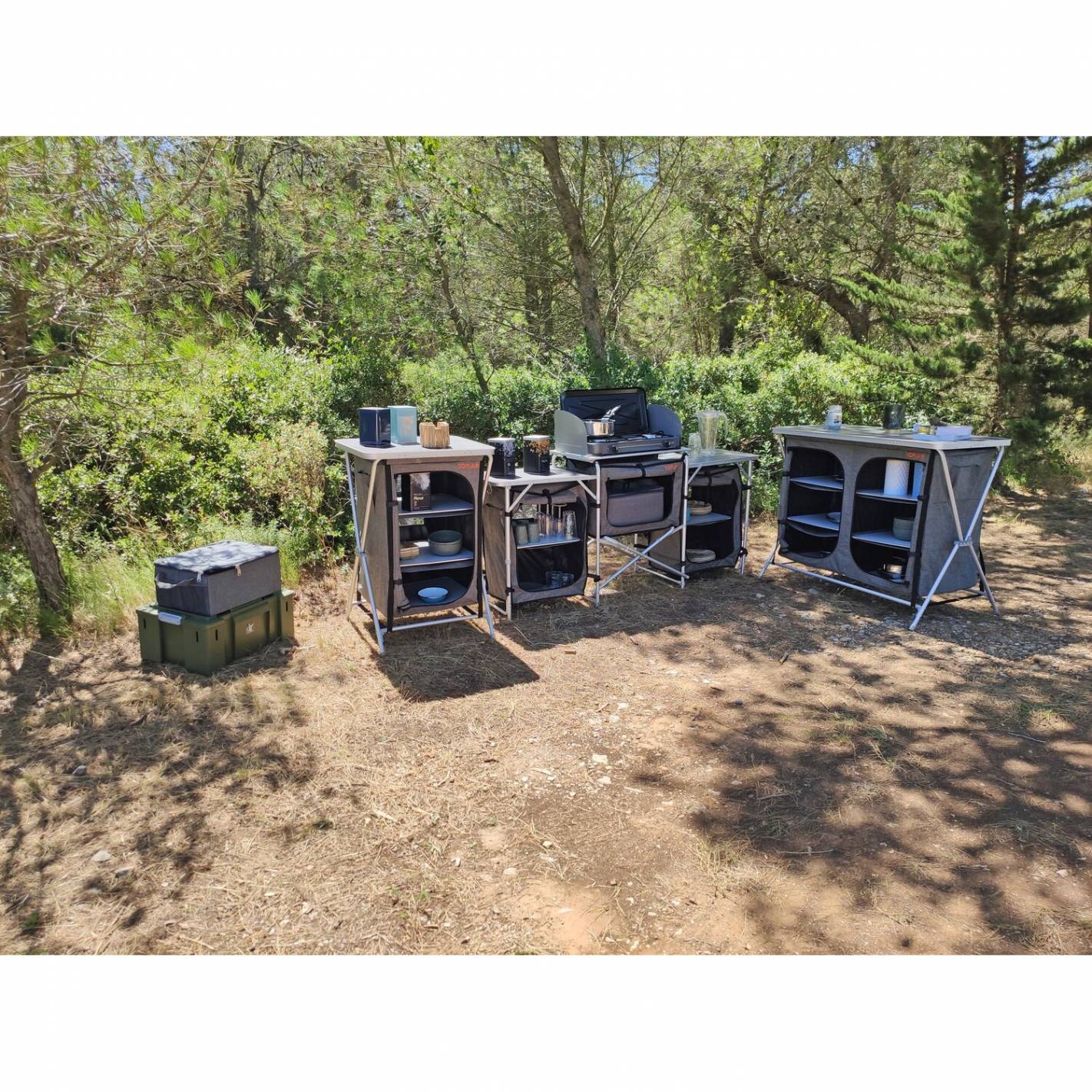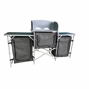 Es muy práctico y te permite cocinar al aire libre: ¡un buen desayuno, la comida del día o lo que te apetezca! Cocinar es fácil con estos muebles de camping. Tendrás todo al alcance de la mano, a la altura adecuada.