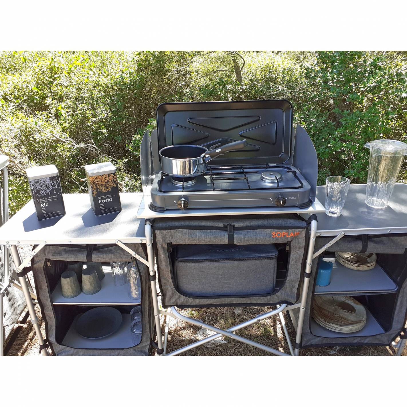 La cocina Aurora de Soplair es perfecta para cocinar con Confort en un espacio exterior del camping.
