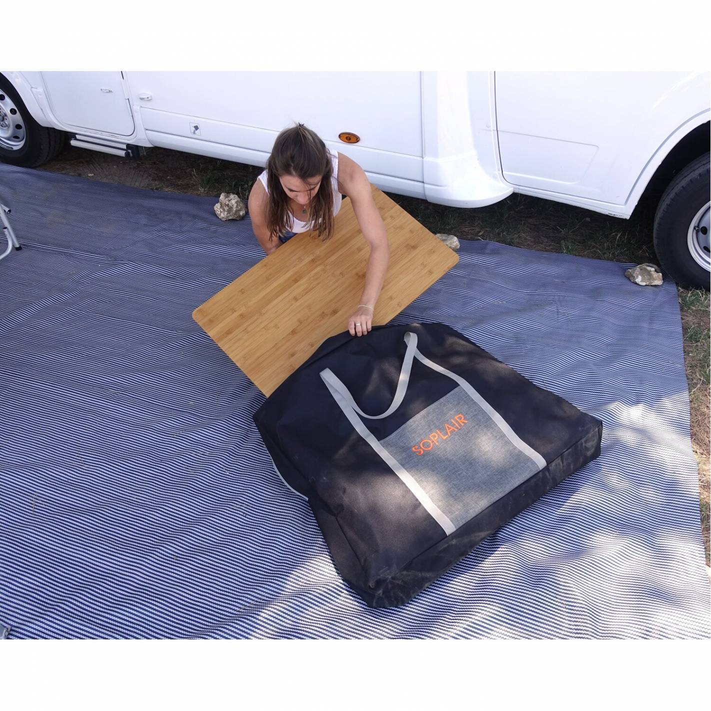 Esta combinación de materiales confiere a los muebles de exterior para camping Soplair un aspecto moderno y elegante