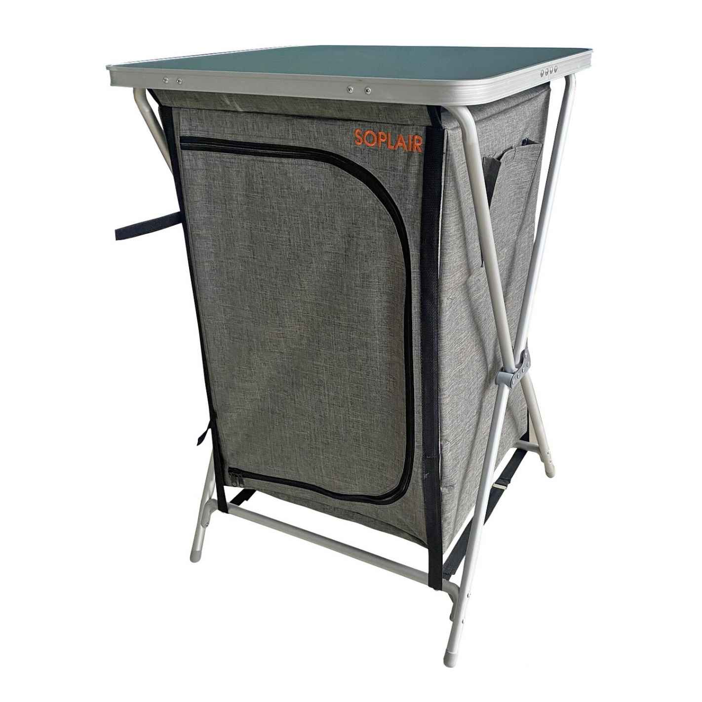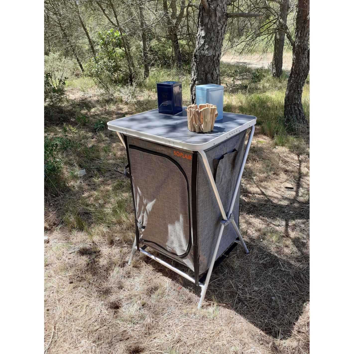 El mueble de almacenamiento Soplair es útil cuando se viaja con cualquier tipo de vehículo recreativo, ya sea un barco, una caravana, una autocaravana, una furgoneta o una furgoneta camperizada. Te permite guardar tus cosas (ropa, vajilla, ropa de cama...) de forma ordenada. Gracias a los muebles de camping, es posible acondicionar un espacio exterior para cocinar, pasar momentos agradables y relajarse. Estos muebles permiten ganar espacio en tu vehículo. ¡Ingenioso!
