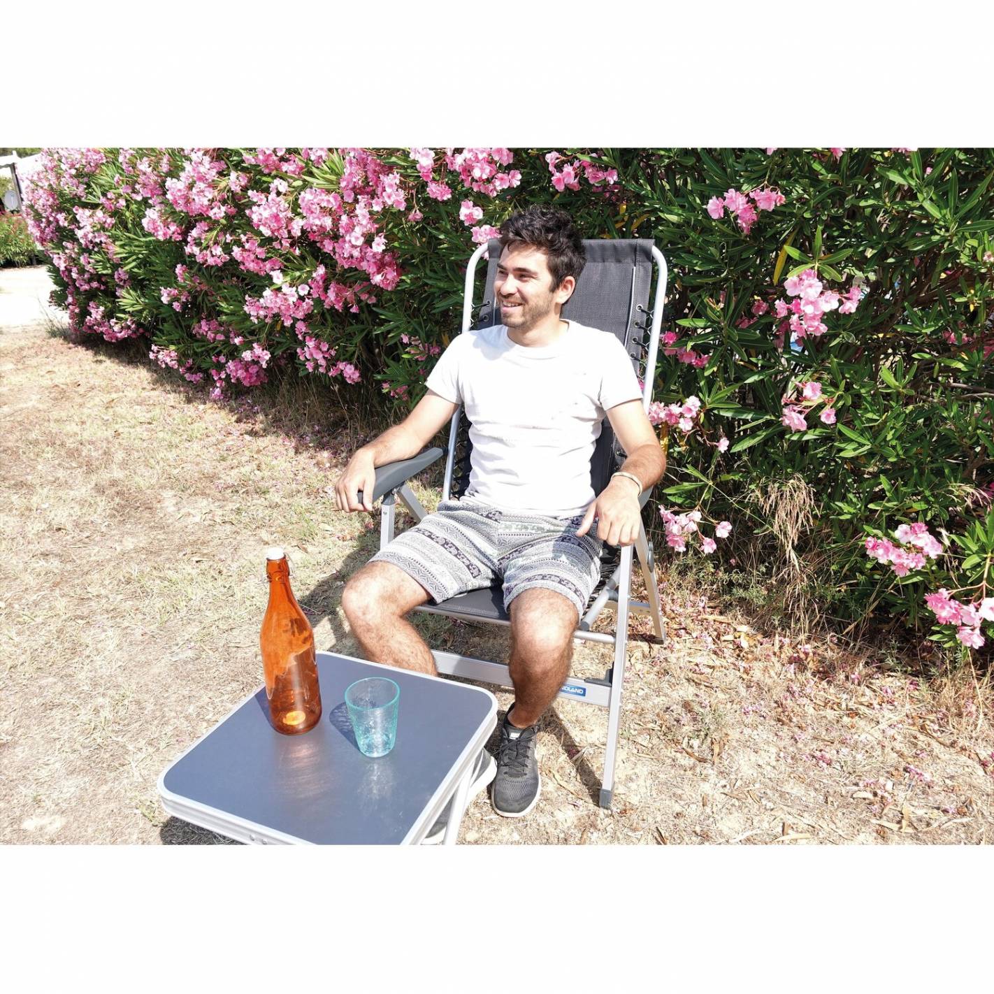 La silla de camping Primo se puede utilizar para descansar o en la mesa para comer o cualquier otra actividad.