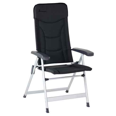 La silla de camping Loke es elegante y robusta a la vez. Está fabricada con un armazón de aluminio y tejido de poliéster. Puede soportar un peso máximo de 120 kg.