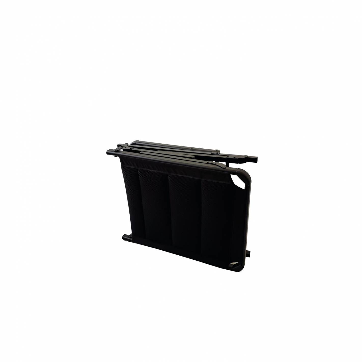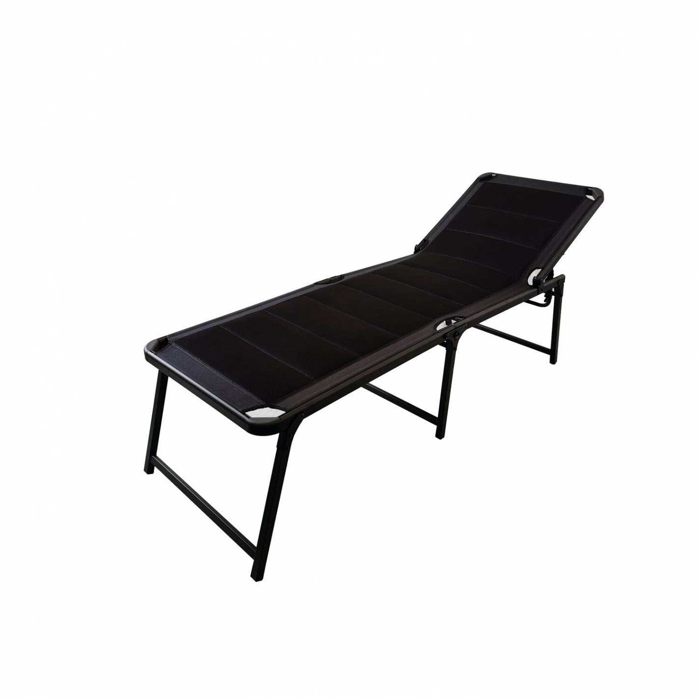 La tumbona negra es fácil de doblar. Además, es muy compacto, lo que es ideal para transportarlo durante un viaje en vehículo de ocio (autocaravana, camioneta, barco, furgoneta acondicionada, caravana...).
