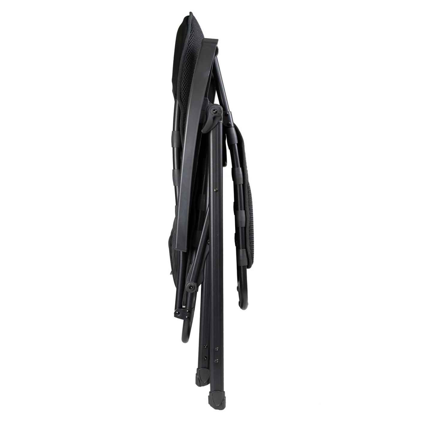 Dimensiones abiertas (ancho x fondo x alto): 75 x 81 x 122 cm. Dimensiones del asiento (ancho x fondo x alto): 57 x 50 x 50 cm. Altura del respaldo: 80 cm. dimensiones plegada: 102 x 75 x 8,5 cm. carga máxima: 160 kg. peso: 8 kg. peso: 8 kg. Color: gris antracita.